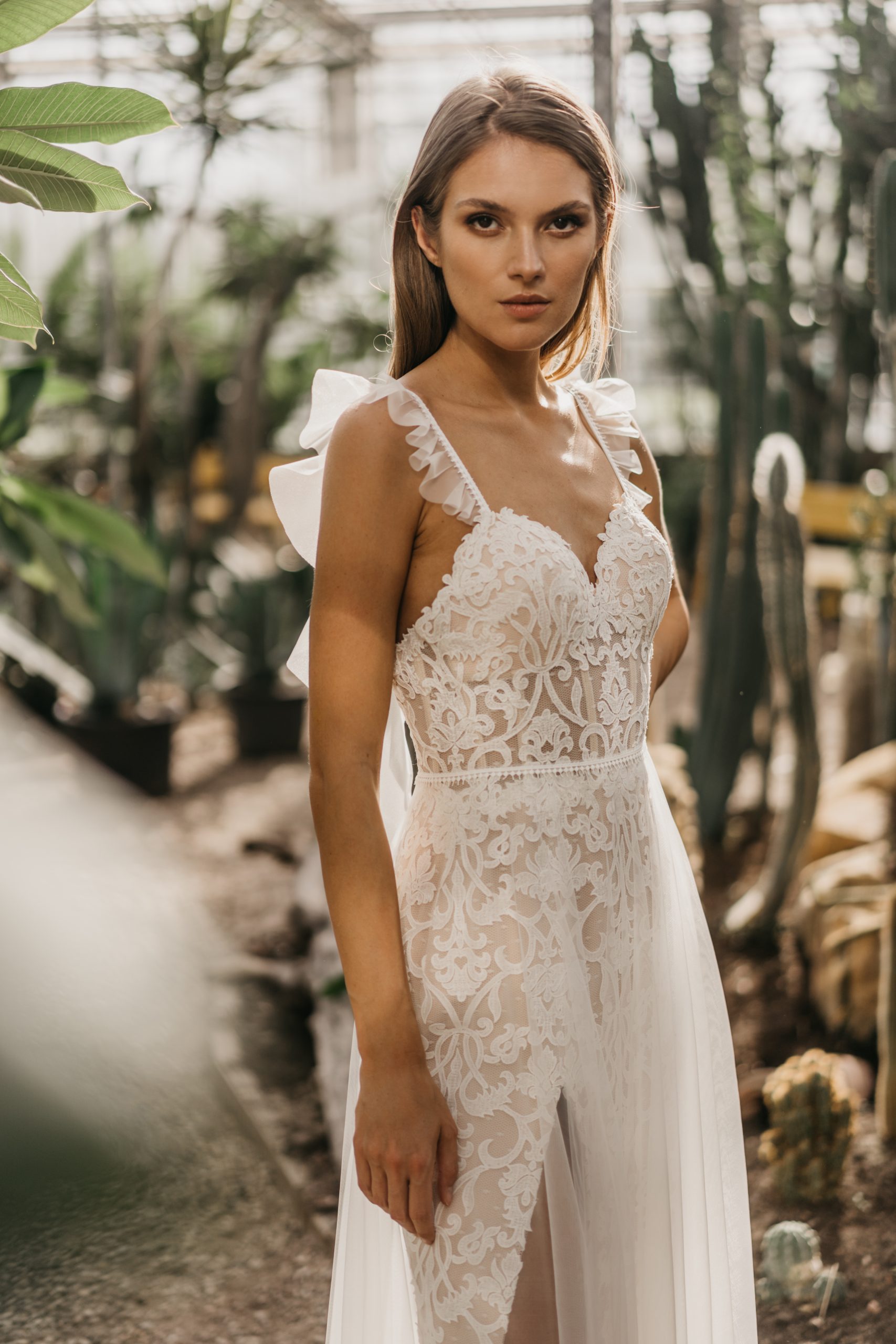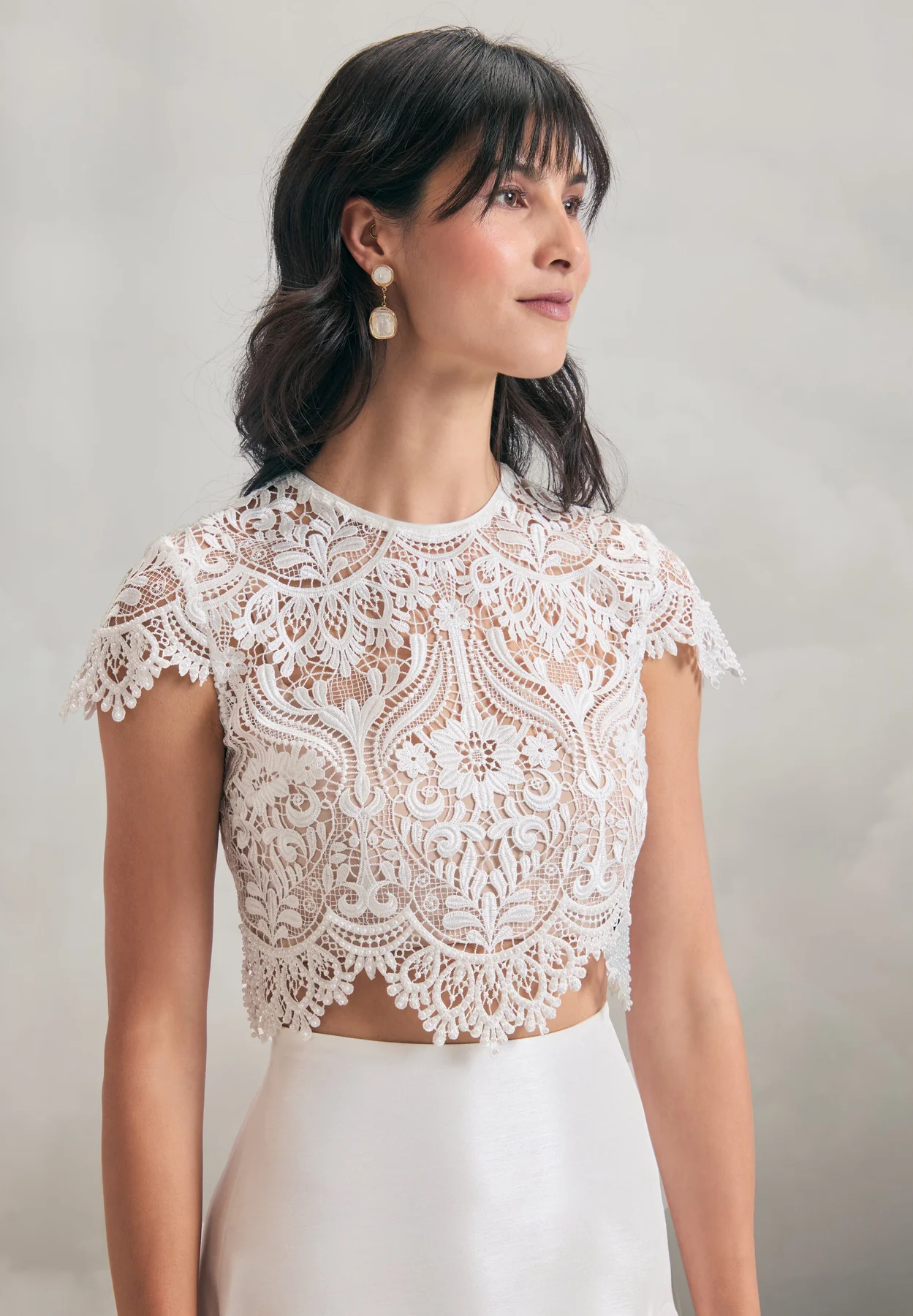Unsere Boho und Vintage Brautkleider- und Oberteile mit viel Spitze sind perfekt für Deine Trauung im Freien!